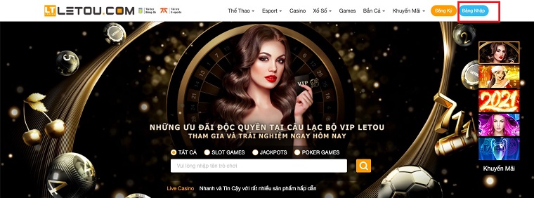 Bước 1: Bạn truy cập vào Letou theo một trong các đường link uy tín được cung cấp trong bài viết này. Trên giao diện màn hình trang chủ, bạn nhấp vào ô “Đăng nhập”.