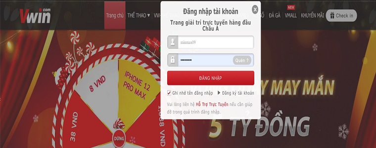 Bước 2: Hướng dẫn đăng nhập tài khoản Vwin
